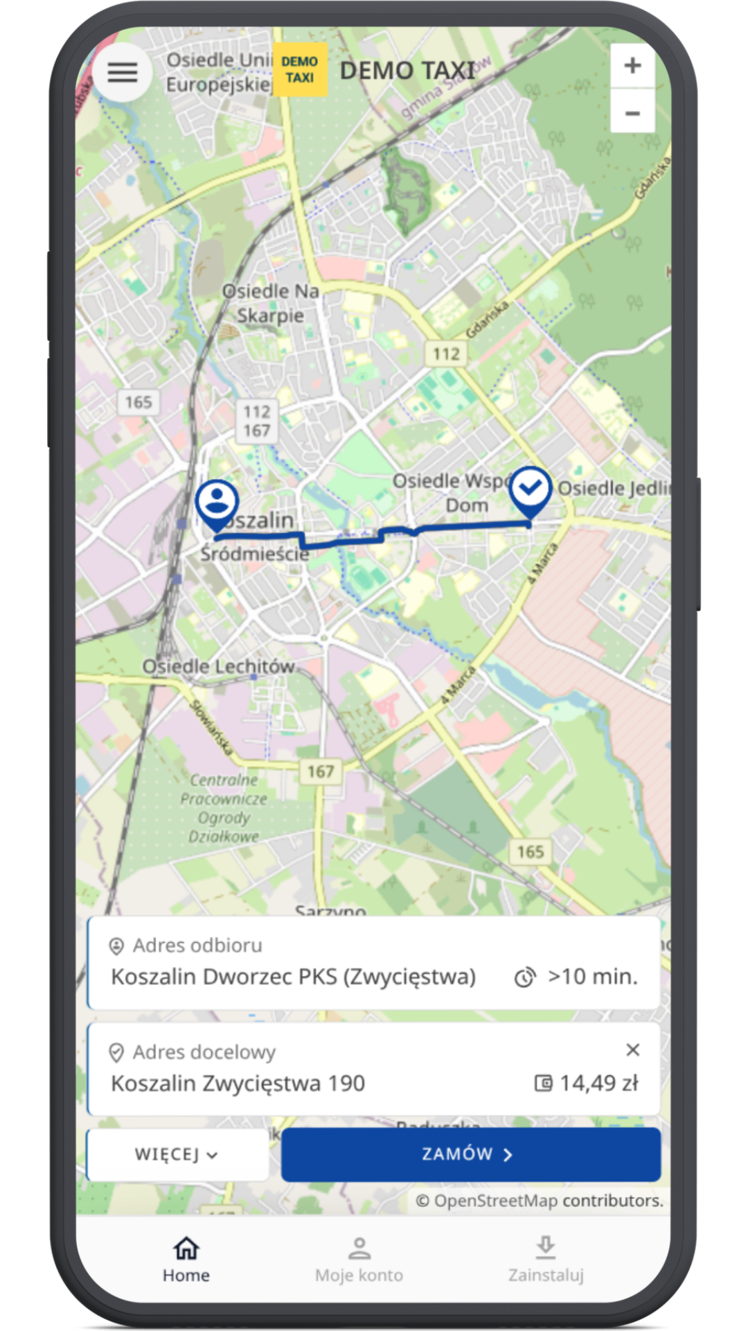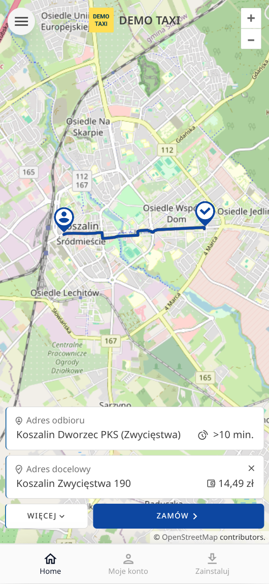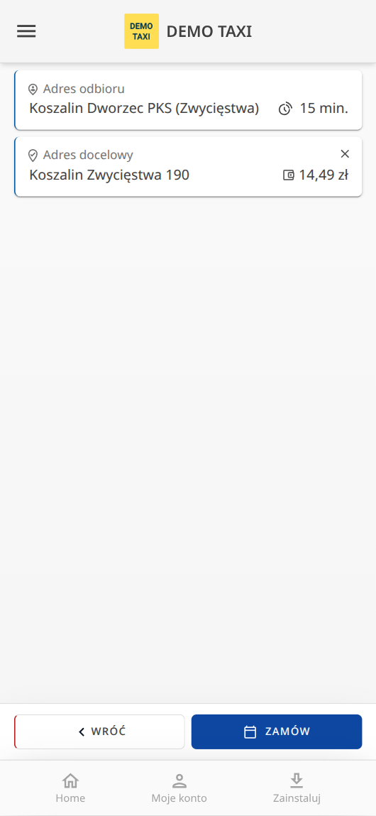 Po zmówieniu taxi klient zostaje przekierowany automatycznie do strony śledzenia i oceny taksówki.
