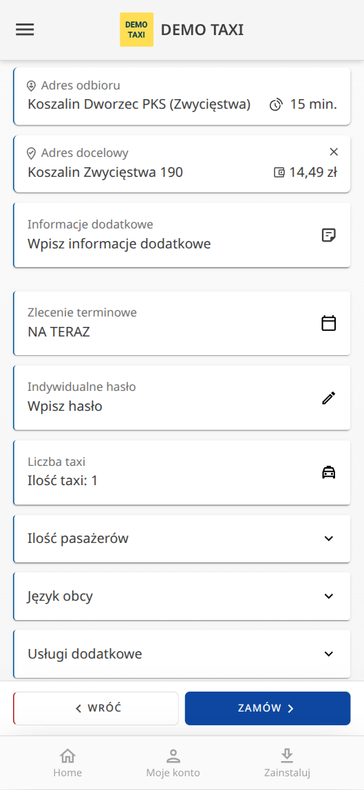 Jak działa automatyczne zamawianie taxi przez stronę WWW (komputer i smartfon)?