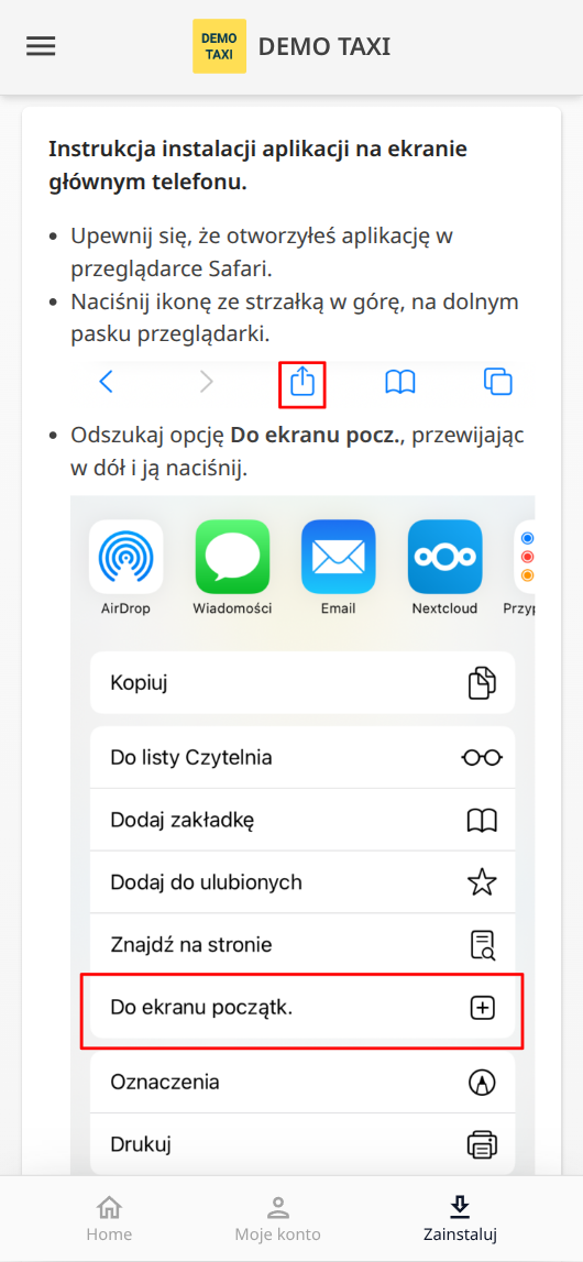 Oprogramowanie zostało stworzone tak, aby działało z wszystkimi urządzeniami obsługującymi standard HTML5. Większość przeglądarek WWW pozwala na dodanie ikony do strony do ekranu głównego. Po dodaniu do ekranu głównego Aplikacja Pasażera zachowuje się jak każda inna aplikacja zainstalowana na telefonie.